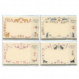 チェコの刺繍のような柄がプリントされたカード&レター。和紙のやさしい風合いと素朴なイラストが、温もりを感じさせてくれるシリーズです。