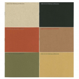 落ち着いたカラーリングが特徴のシンプルなポケットアルバムです。表紙には「Leben ist eine Anhäufung von Momenten.」(人生は瞬間の蓄積である)と記載されています。