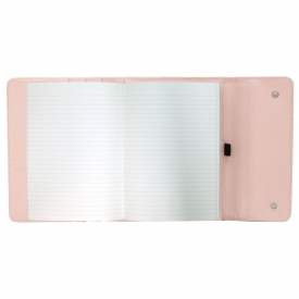 落ち着いたカラーリングが特徴のノートカバー&ノートです。外側には上質な合皮素材を使用、内側には複数のポケットが付いています。カード・筆記具・ノートをひとまとめに持ち歩くことができます。