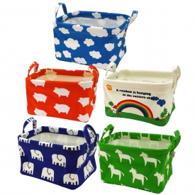 折りたたみ可能なコットン製の収納ケース。SSサイズはスプレーや化粧品などの整理に、Sサイズはランドリーボックス等として使用するのにちょうどよい大きさです。裏はラミネート加工が施されています。