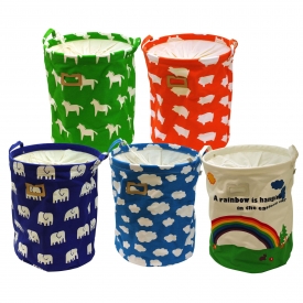折りたたみ可能なコットン製ランドリーバッグ、ダストボックス等としてもご使用いただけます。持ち運ぶ際に中身がこぼれたりしないよう、上部を巾着のように紐でしばって閉じられるようになっています。