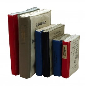 本の形をしたコットン製のポーチ。2センチほどのマチがあり、中には3つのポケットが付いています。本や手帳と一緒に、ブックマークや少量の筆記具などを入れて持ち運ぶのに便利です。
