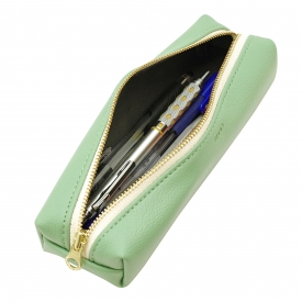 発色が良く、手に馴染む合皮素材を使用したペンケースです。内側には「IT ALL DEPENDS ON HOW YOU SEE AND INTERPRET THINGS」のメッセージが刻まれています。