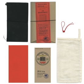 大人気のトラベラーズノートダイアリー2014年版です。勿論リフィルだけではなく、革製カバー付のものもございますので、今年からトラベラーズノートを始めようという方でもバッチリご利用いただけます。