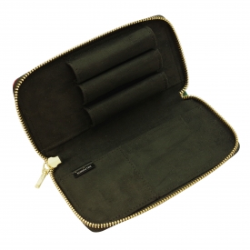 上質さとカジュアルさを兼ね備えたリノブラーノ「クラヴァッタ」シリーズの「ラウンドジップタイプ」ペンケースです。3つのペンポケットやカードを収納するためのサイドポケットがついており、非常に機能的。