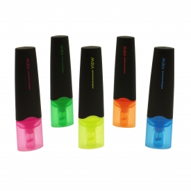 メーカーさんの展示会で一目惚れ。その後使用してなお気に入った蛍光ペンの新顔です。ペン先の四角い窓は見た目にも美しく機能的(窓から下の文字が見えるため的確に線が引きやすいのです)。