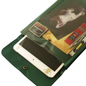 スマホやタブレットと一緒に、ペンやノート、メモ帳などをまとめて持ち歩くのに適したキャリングケースです。正面は透明になっているので、何を収納しているかがひと目でわかります。