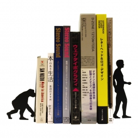 横から見るとわかりやすいのですが、「類人猿が本をを読むことにより人になる」という時系列を表現しています。私たちの使命を象徴するかのようなデザインを高く評価しました。