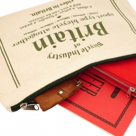 大きめサイズのコットン製ポーチです。内側は2つに分かれています。ステーショナリーや化粧品・小物などを持ち運ぶ際に便利です。