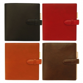 牛革を国内で丁寧に鞣したベーシックなシステム手帳バインダー。革の表面は柔らかな光沢を放ち、上品さを感じさせてくれます。古くから職人が腕を競い合うと言われるコーナー部分の菊寄せ加工が美しい逸品です。