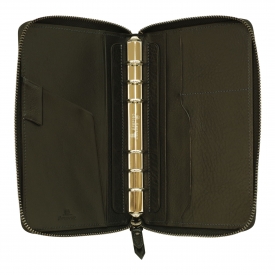 イタリアンキップレザーを使用したジッパータイプのシステム手帳。革にたっぷりとオイルを浸透させ、深みのある落ち着いた色味と透明感を演出しました。しっとり滑らかな手触りも上質さを感じさせてくれます。