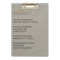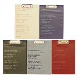 シンプルで機能的な透明ポケット付きのクリップボード。塩ビ素材のマットな質感とタイポグラフィーの組み合わせがさりげなくセンスのよいアイテムです。