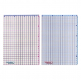 方眼線入りの透明プラスチック下敷き。縁には定規目盛りが入っています。
