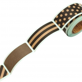 きらきらかわいい「金箔 型抜き」タイプのマスキングテープです。金の箔押しが加わることで、よりインパクトのあるかわいらしさを演出できるようになりました。
