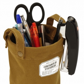 ワークテイストがかわいいコットンキャンバス製コンテナ。ペンスタンドや、デスクオーガナイザーとして使用するのに程良いサイズです。裏側はラミネート加工が施されており、汚れが付着しにくいようになっています。