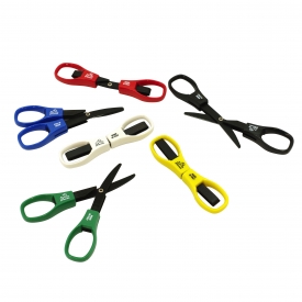 メガネのような姿をしたユニークなフォルムの「おりたたみハサミ」です。ペンケースやポーチに気軽に入れておけるコンパクトサイズ。