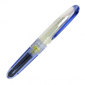 とてもコンパクトで手のひらサイズです。書くときはキャップを本体の後ろに装着するとちょうど良い長さになります。ブルーのスケルトンなのでインクの残量がすぐに分かります。ペン先は細字のFです。価格以上の書き心地だと思います。