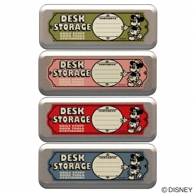 ブリキのケースとレトロでかわいらしいディズニーキャラクターがマッチした、オールドアメリカンな雰囲気のペンケース(缶ペン)です。窓枠の中にはCONTENS(内容物)を記入できるスペースがあります。