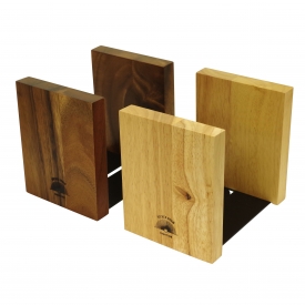 オーソドックスな木製のブックエンドです。天然木をつなぎ合わせて作られている為、1つ1つが異なった模様(木目)を持っています。