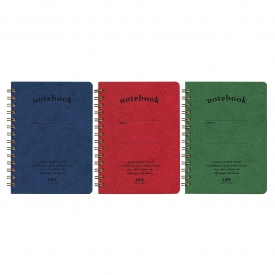 落ち着きのあるカラーリングの厚紙表紙に黒の箔押しを採用したクラシックなデザインのA6サイズノート。金のダブルリングがアクセントになっています。