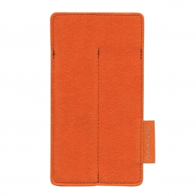 生地はとても軽く丈夫なエクセーヌ素材(東レさんが開発されたスエード調の素材)が採用されており、肌触りも良好です。伸縮性もあるので、太めのペンでもしっかり入ります。(およそ直径19mm幅まで入りました)