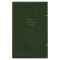 落ち着きのあるカラーリングの厚紙表紙に黒の箔押しを採用したクラシックなデザインのA6サイズノート。金のダブルリングがアクセントになっています。