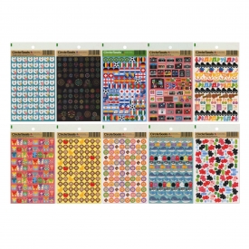 手帳やノートのデコレーションに便利なサークルシール2014年夏発売柄です。「ライオンくん」「おさるくん」など、一部旧来のデザインがリニューアルされたシールもございます。