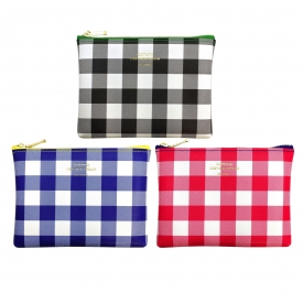 爽やかながら大人な雰囲気を合わせ持つグラフィカルなギンガムチェック柄を採用したポーチです。
