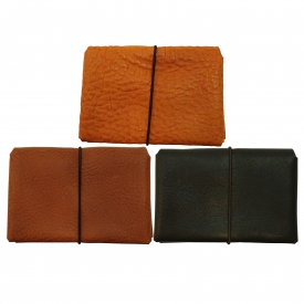 1枚の革から手縫いで作られた牛革製名刺入れです。ゴム止め仕様なので、カバンの中で中身が開いてしまい飛び出すこともありません。名刺を約50枚収納できます。