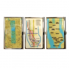 スチール製のボディに、アメリカ合衆国最大の都市「ニューヨーク」の地図デザインを加えた名刺ケースです。名刺を約15枚収納可能。