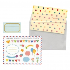 シンプルな無地のメッセージカードと、うっすらストライプ調の模様が入ったミューズコットン紙封筒のセットです。カードはA6サイズで、プリンタでの印刷にも対応。2つ折りにして封筒に入れてお贈りください。