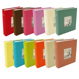 発色の美しい布貼りハードカバー表紙のポケットアルバム。ポストカードサイズ(102×152mm)を200枚収納することができます。表紙の窓部分は、お好みの写真に差し替えが可能です。