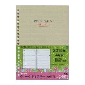 コレクトさんの2015年4月始まりルーズリーフダイアリーリフィルです。普段ルーズリーフバインダーをお使いのビジネスパーソンにオススメ。週間ホリゾンタルレフトタイプなので、しっかり予定もメモも書き込めます。