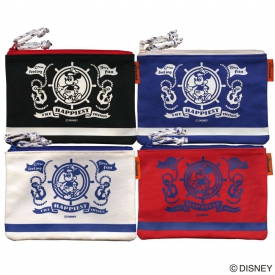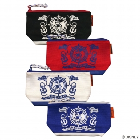 船長ルックのミッキーがプリントされた帆布製のダブルジップポーチ。ジッパーの先に結ばれたロープのような紐がかわいいアイテムです。2つのジッパーポケットで、小物を分けて収納することができます。