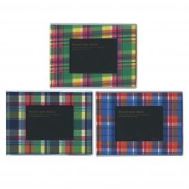 マドラスチェック柄の布貼りカバーが爽やかな粘着台紙アルバム。表紙はフォトフレームになっており、お気に入りのL判写真をセットすることができます。ビニールカバー付き。