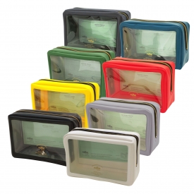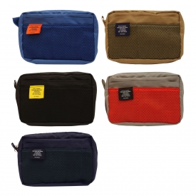 透明窓から中身が見えるPVC製のポーチです。軽量で水や汚れに強く、色鮮やかで見た目にもポップな仕上がりになっています。