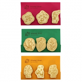 かわいいスニーフのキャラクターが彫られた木製のクリップ。優しいイラストのタッチと素材感が相俟って、素朴で温かい雰囲気に仕上がっています。3個入り。