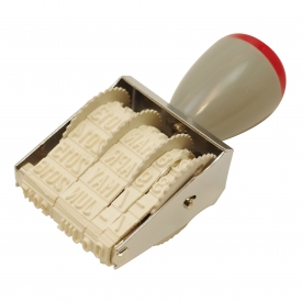 ダイヤル式(回転式)の日付スタンプ。見た目もつくりもシンプルで、手軽に使えます。2013年から2024年まで対応。「月」のみ英語表記(JAN、FEB、MARなど)です。