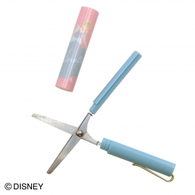 ディズニー映画に登場する素敵なプリンセスのイラストをあしらった、スティック型のはさみ。キャップをはずすと、バネの力で刃が開く仕組みになっています。