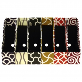 文様を絶妙なカラーリングでモダンに仕上げた「TEXTILE/テキスタイル」シリーズのA4サイズ用マガジンボックス。前面が低く設計されているため、中の物が取り出しやすいのが特徴です。
