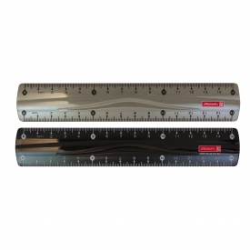 ドイツ「BRUNNEN/ブルンネン」社の樹脂製ルーラー。両端に目盛りがふられているため、右利き左利きどちらの方にも使いやすいのが特徴です。中央部分には流線型のくぼみが付いています。不透明タイプ。