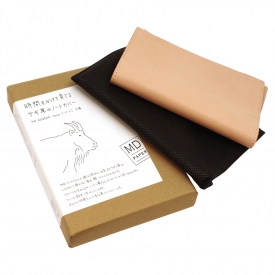 中央アジア高地に生息するヤギの革を使用したMDノートカバー。しなやかさと弾力性に富み、軽くて丈夫な点が特徴です。革本来の風合いを残すために無着色で仕上げられており、使うほどに飴色に変化していきます。