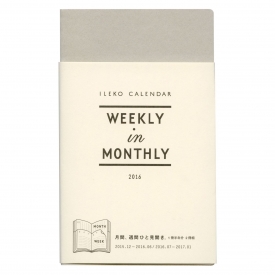 月間の予定と週間の予定を同時に見ることができる、ポケットサイズの小さな手帳 「イレコカレンダー」です。見開き1ヶ月のマンスリースケジュールの下に、 4週間分のウィークリースケジュールが綴じられた、ユニークで機能的な フォーマットが特徴。半年分の手帳が2冊セットになっています。