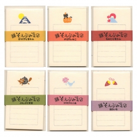 優しい色目の和紙に、かわいいワンポイントのイラストが入った、小さな和紙のレターセットです。メモ感覚の手軽さが人気の秘密。2015年秋柄です。