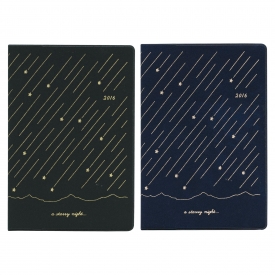 オレンジエアラインズの2016年1月始まりダイアリー。星や雑貨などをモチーフにしたさりげないイラストをあしらった、かわいくて品のよいデザインが特徴です。