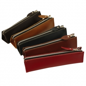 しなやかなキップレザー(牛革)を使用したスティック型のペンケース。しっくりと馴染む心地よい手触りと、握りやすい形状が特徴です。柔らかい革で口が大きく開くため、筆記具の出し入れがしやすく、容量も十分。