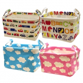 コンパクトに折りたたむことができるコットン製の収納ケースです。