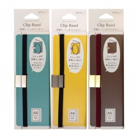 手帳やノートが不用意に開いてしまうのを防止してくれるゴムバンド。裏表紙にクリップを差し込むことで手帳と一体になるので、置き場に困らず、紛失も防ぎます。
