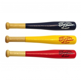 「penco」のロゴが印字された、木製バッド型のユニークなボールペン。バットの持ち手がキャップ代わりになっています。キャップを付けると、本物のバットのような佇まいです。