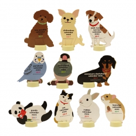 厚紙を動物の形に型抜きした、かわいい卓上カレンダー。月ごとにカラーが異なる動物を、毎月表紙を差し替えて使います。